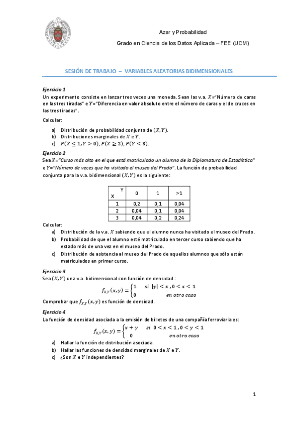 He publicado nuevos ejercicios de 1º Azar y Probabilidad: VA-Bidimensionales.pdf