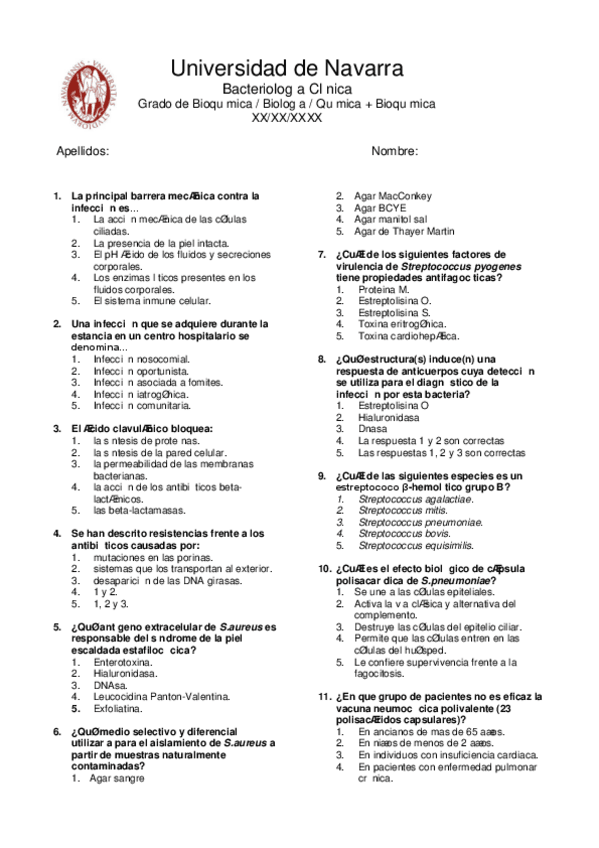 He publicado nuevos examenes de 3º Bacteriología Clínica: Modelo Examen Con Solucion
