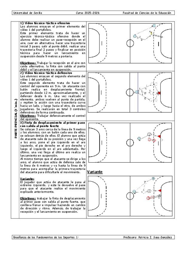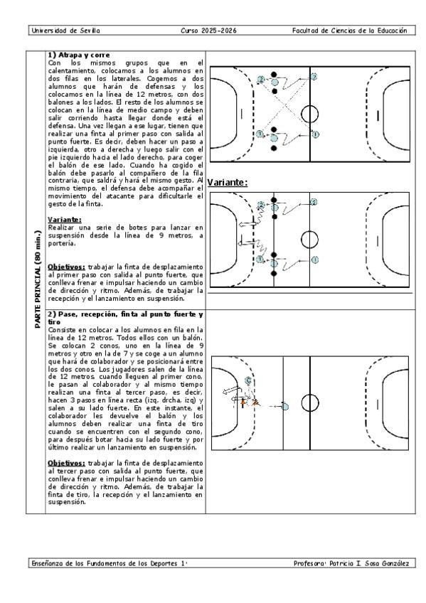 Por aquí tenéis una sesión completa de balonmano que pertenece al primer curso de Ciencias del Deporte.