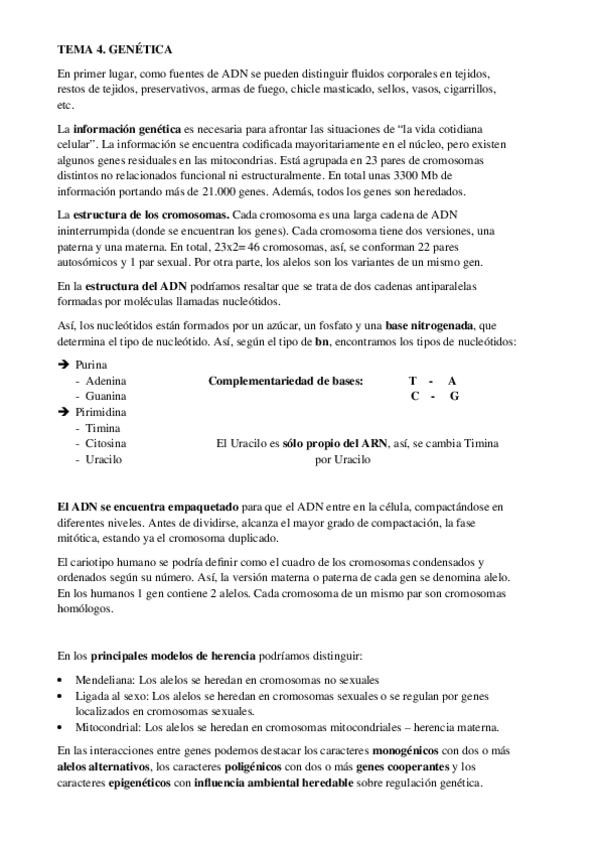 He publicado nuevos apuntes de 1º Bases Científicas de las Ciencias Forenses: temA 4 GENETICA.pdf