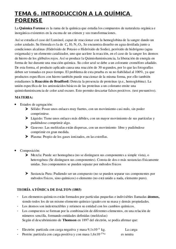 He publicado nuevos apuntes de 1º Bases Científicas de las Ciencias Forenses: Tema 6 Introducción a la Química Forense. Elementos de la Química Inorgánica. Átomos. Moléculas..pdf