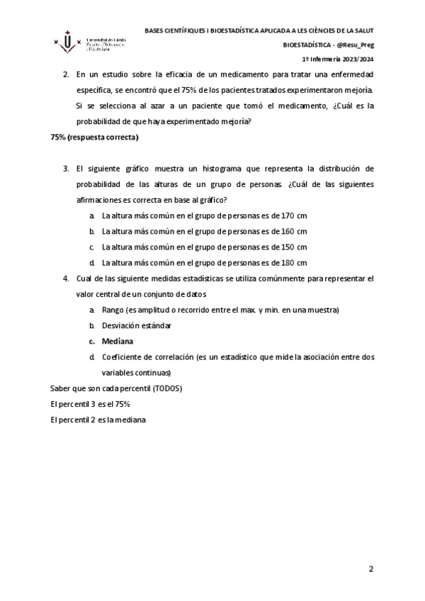 He publicado nuevos apuntes de 1º BASES CIENTÍFIQUES I BIOESTADÍSTICA APLICADA A LES CIÈNCIES DE LA SALUT: Preguntas-recuperacion-Bioestadistica-2023-y-2021.pdf