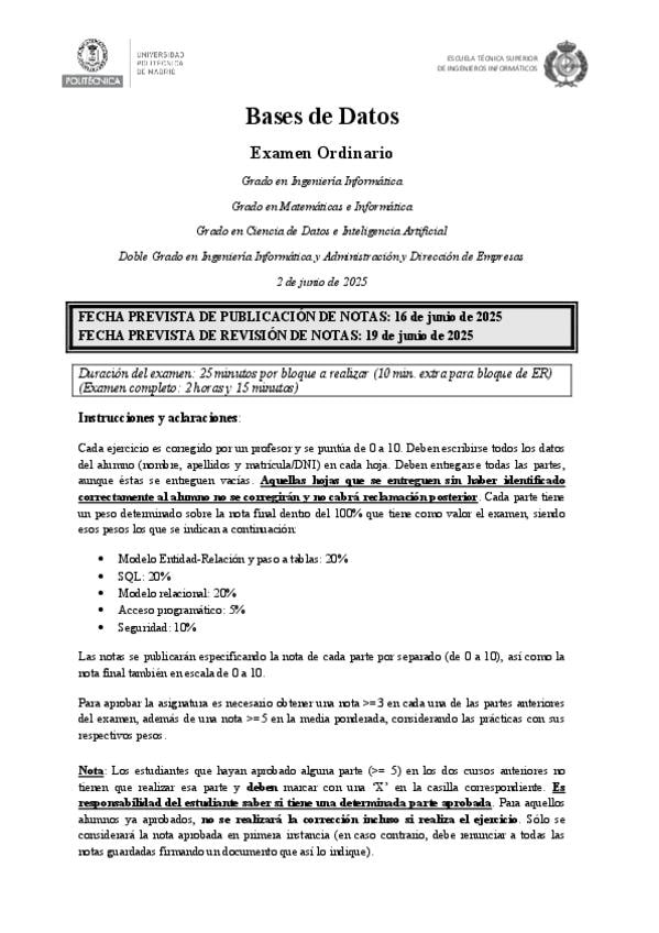 He publicado nuevos examenes de 2º Bases de Datos: Mayo2025sinsolucion.pdf