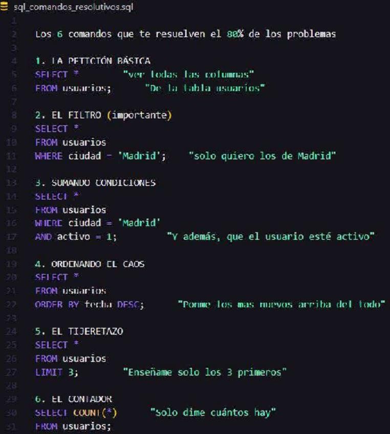 He publicado nuevos apuntes de Bases de Datos: SQL-comandos-resolutivos.pdf