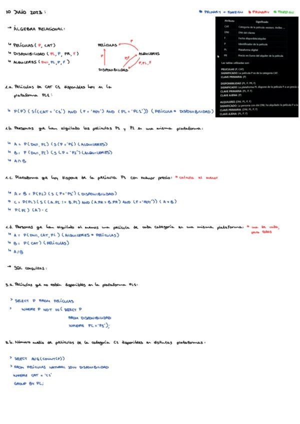 Examenes años anteriores resueltos, parte de algebra sql peticiones y consultas