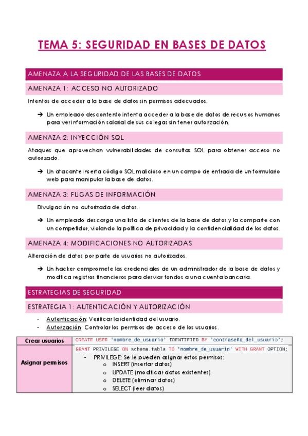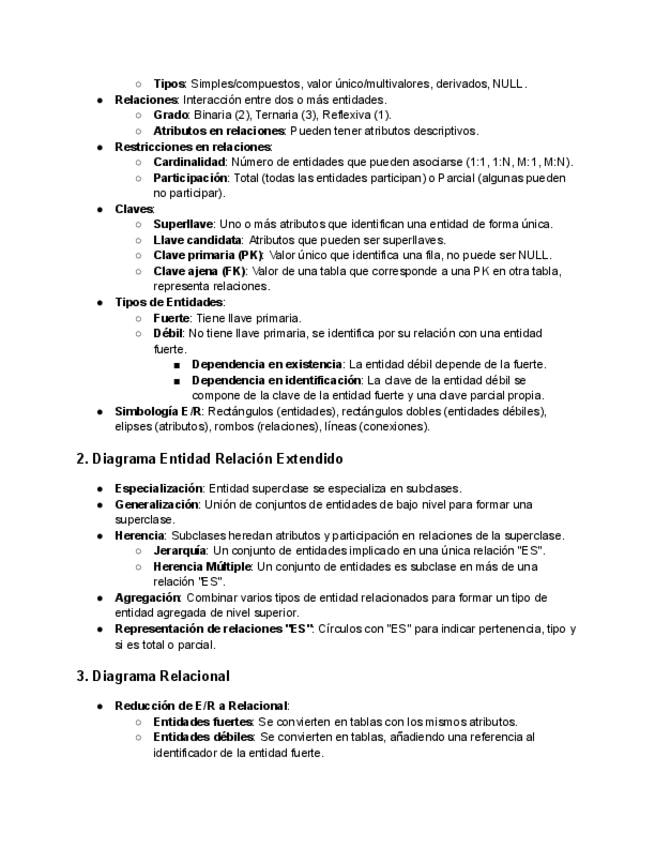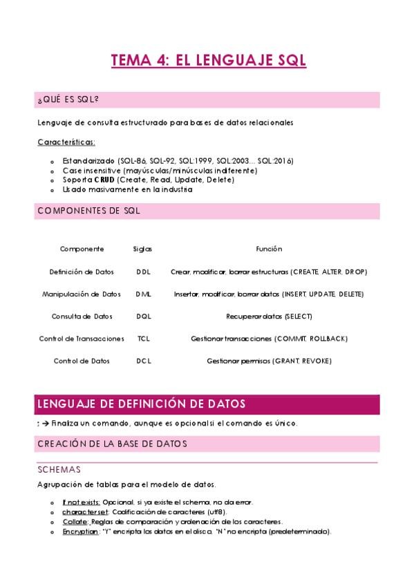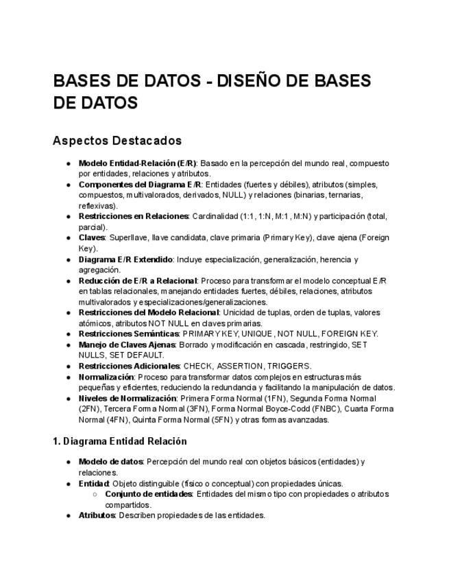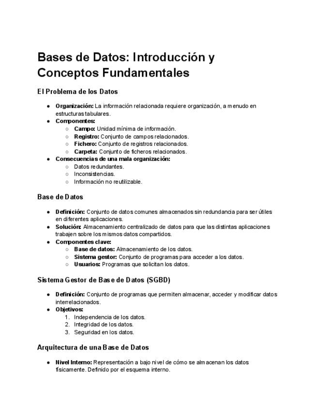 Apuntes resumidos de los temas de Base de Datos