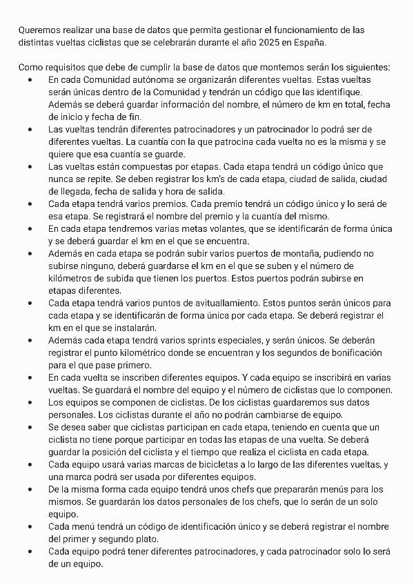 He publicado nuevos ejercicios de 2º Bases de Datos: UD2BDACICLISMO.pdf