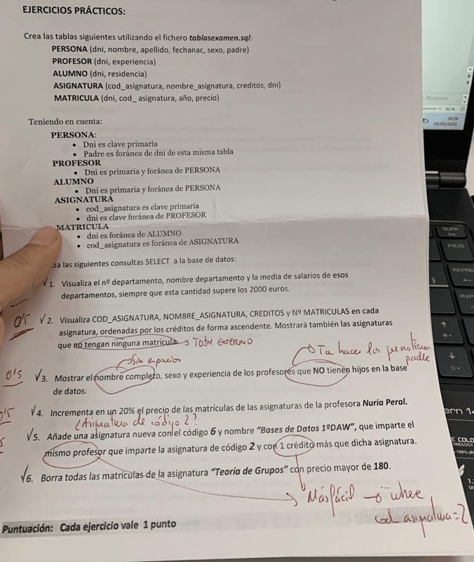 Fotos de Examenes de bbdd a lo largo del curso