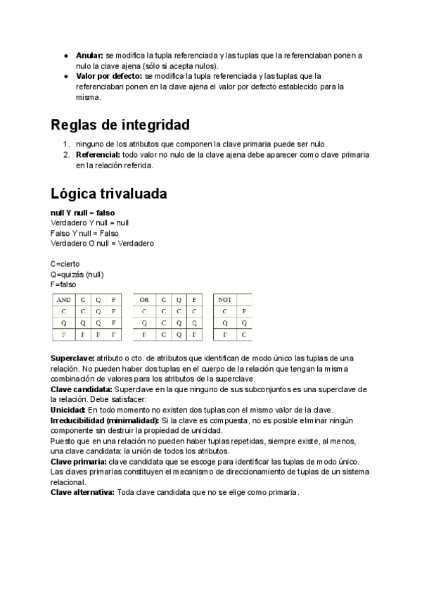 Apuntes extraídos de notas de clase, diapositivas proporcionadas por los profesores y del libro de teoría de Base de datos.