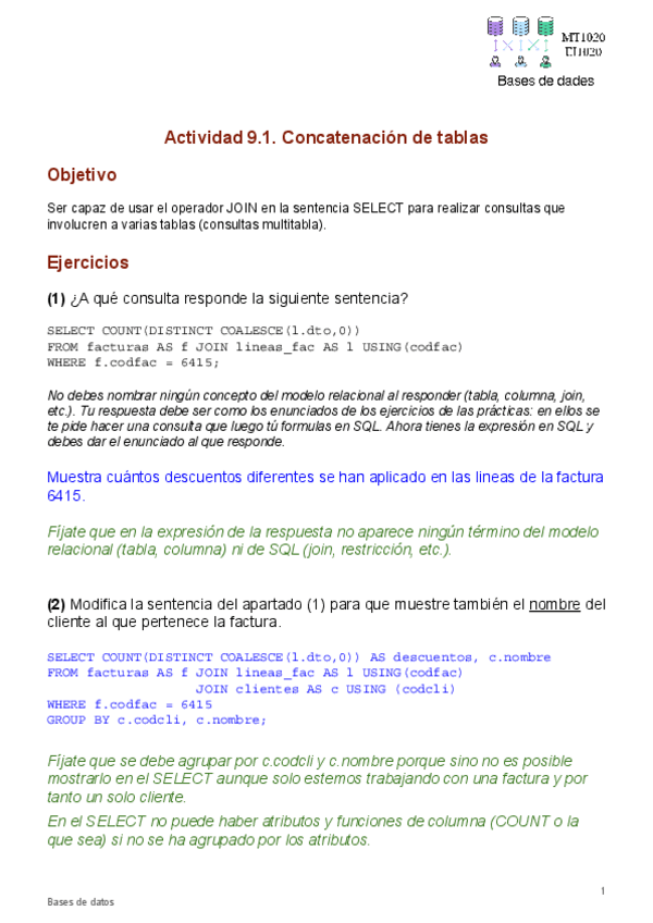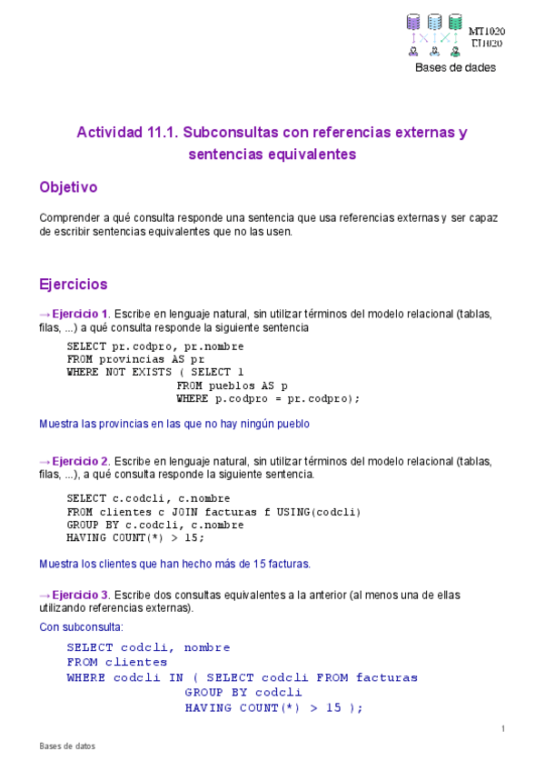 He publicado nuevos practicas de 2º Bases de Datos: Soluciones prácticas
