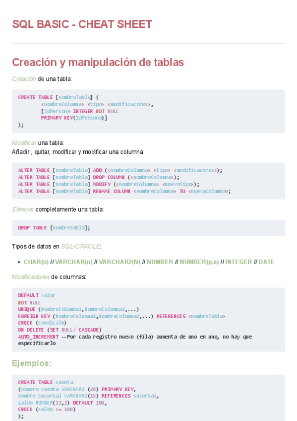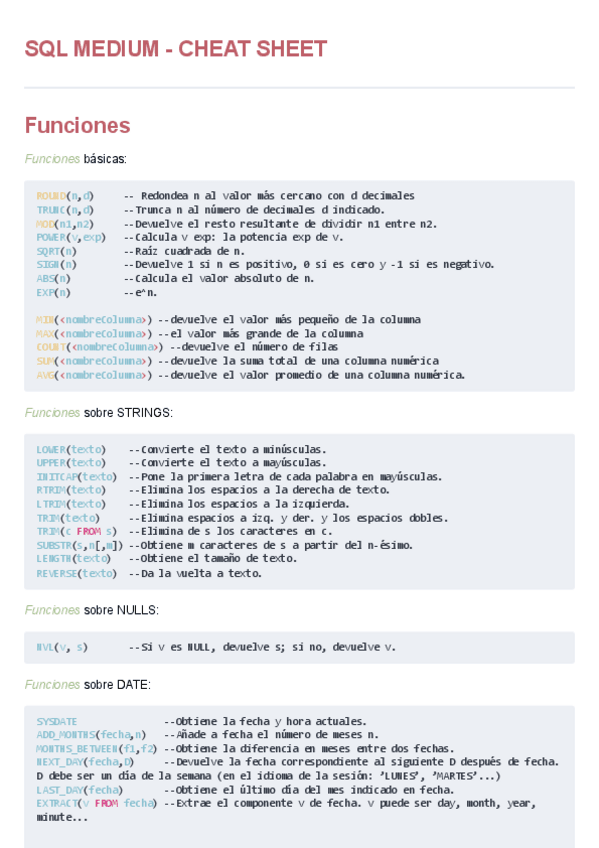 Cheat Sheet de SQL