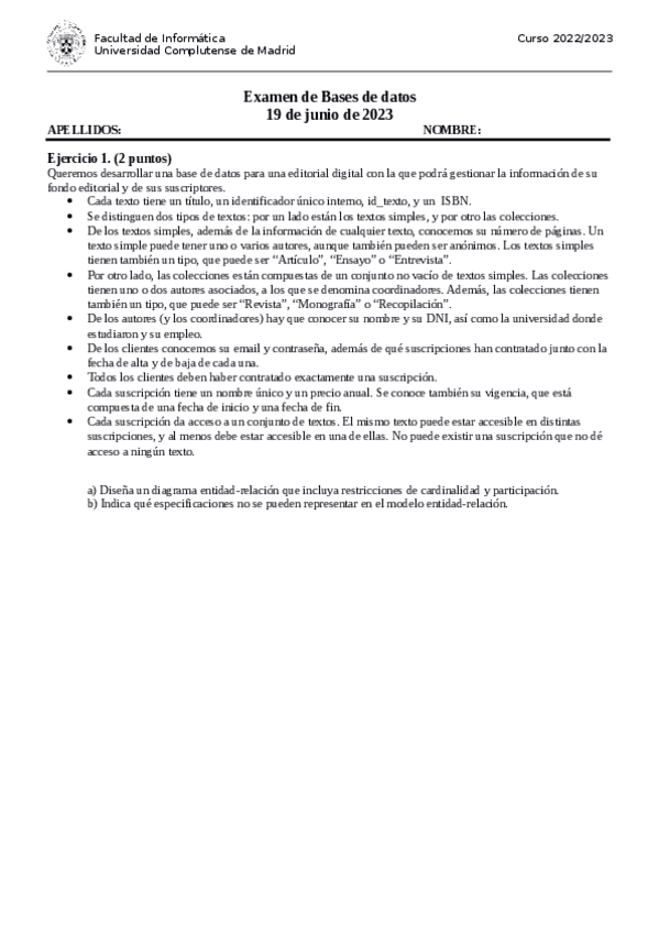 He publicado nuevos examenes de 2º Bases de Datos: examenBD-2023-ENE.pdf