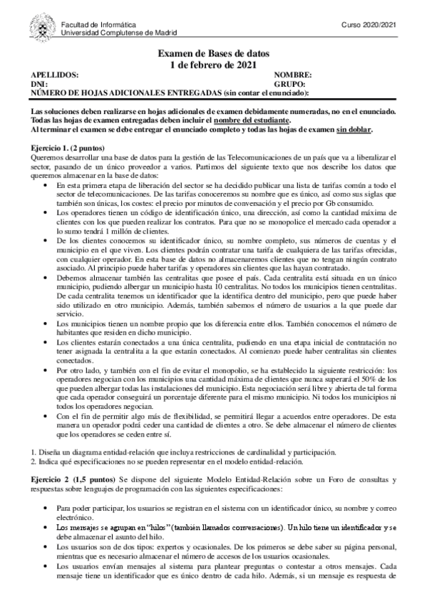 He publicado nuevos examenes de 2º Bases de Datos: examenBD-2021-FEB.pdf