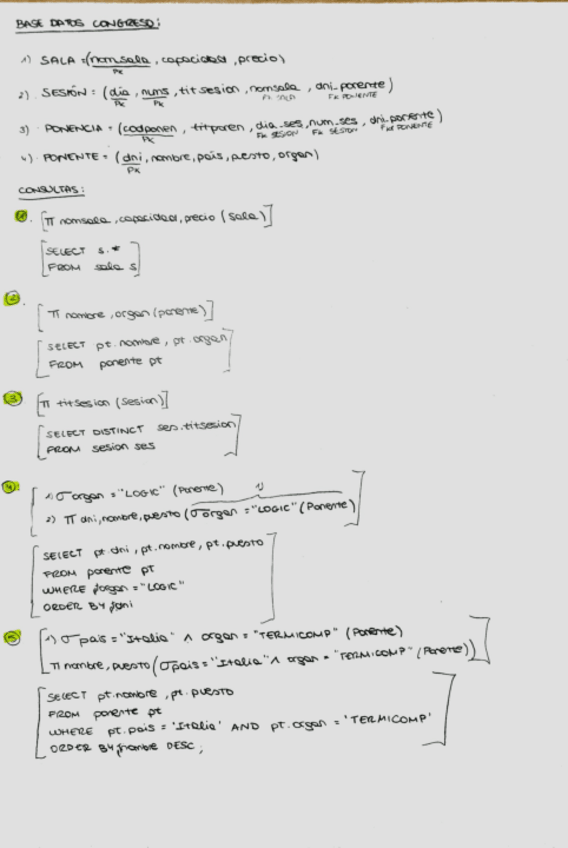consultas hechas de la bbdd de congresos (sql y álgebra relacional)