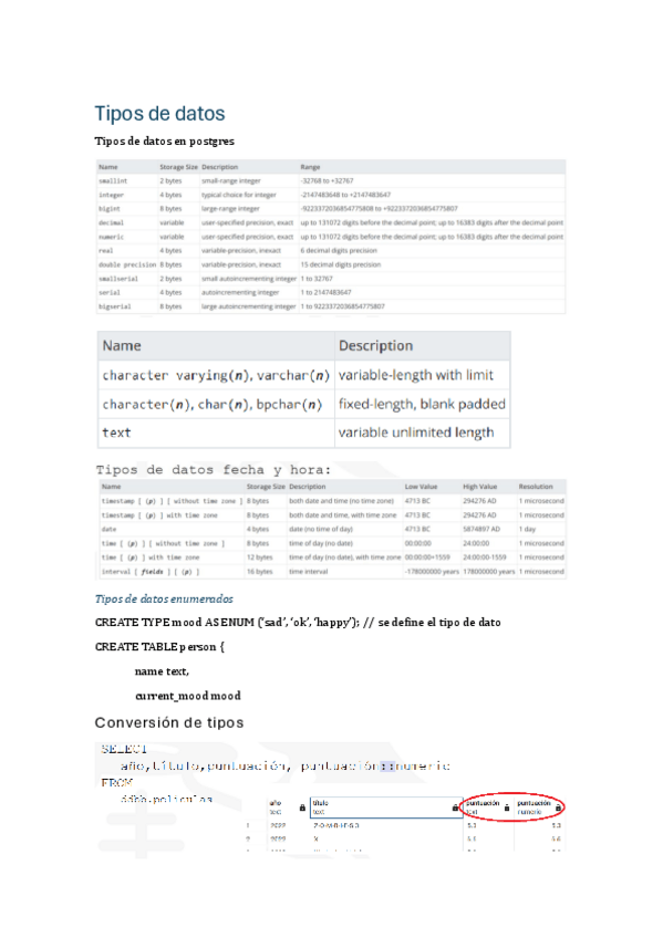 apuntes sobre los tipos de datos que hay en sql