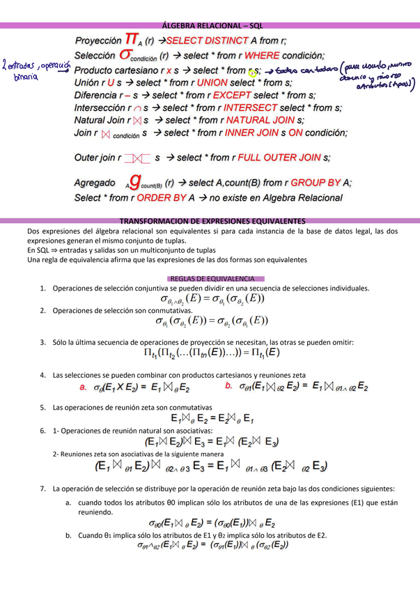 Algebra Relacional y SQL explicado resumido y con ejemplos