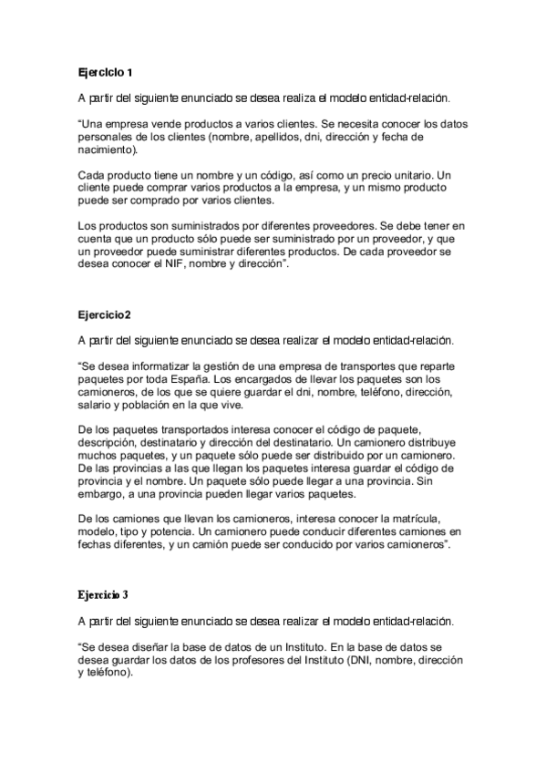 Enunciado de todos los ejercicios de modelo Entidad Relación (+ extendido)