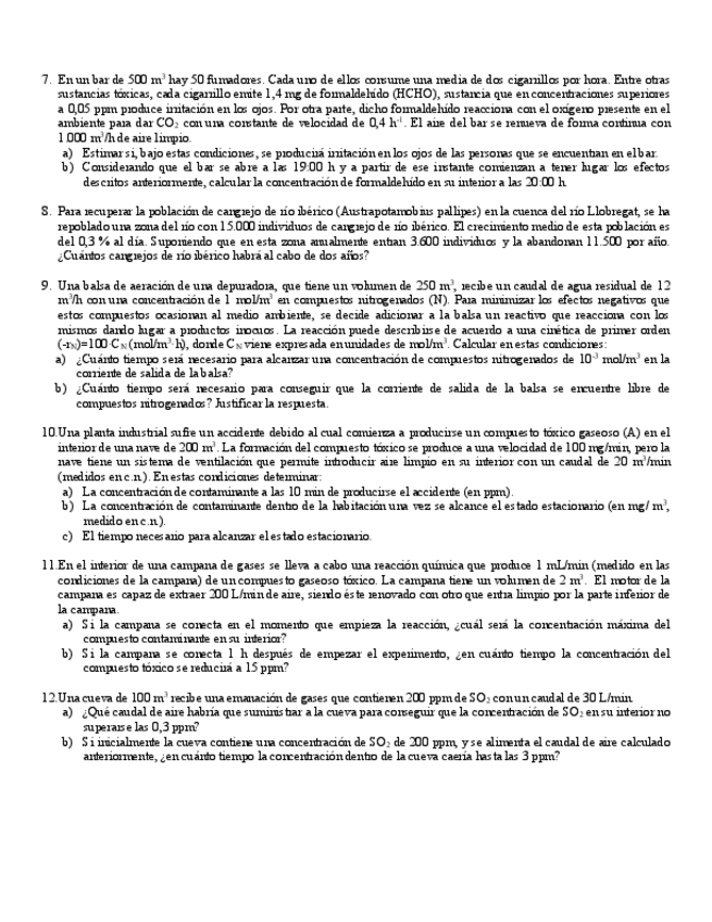 He publicado nuevos ejercicios de 3º Bases de Ingeniería Ambienta: Ejercicios-Hoja-7--Formulario.pdf