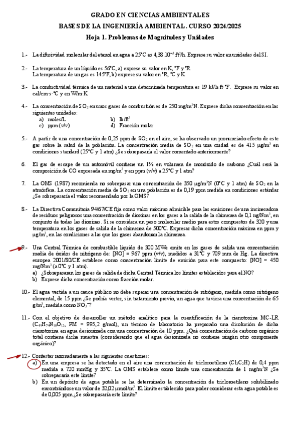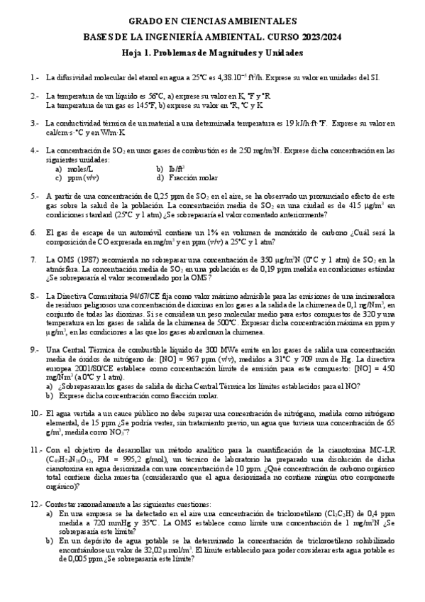 He publicado nuevos ejercicios de 3º Bases de Ingeniería Ambienta: Hoja-1-Resueltos.pdf