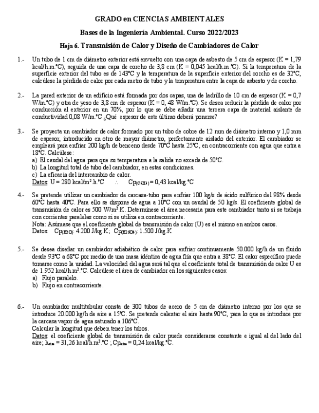 He publicado nuevos ejercicios de 3º Bases de Ingeniería Ambienta: PROBLEMASTRANSFERENCIADECALOR.pdf