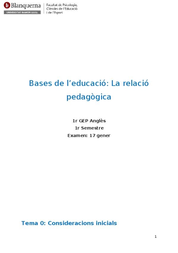 He publicado nuevos apuntes de 1º Bases de la educación: la relación pedagógica: Bases de l'educació