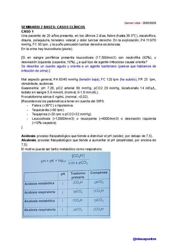 Apuntes del primer caso clínico completo del segundo seminario de bases del curso 2025/2026 impartido por Carmen Vidal.