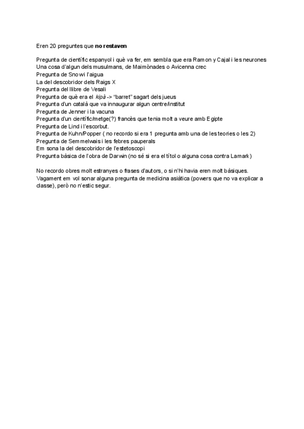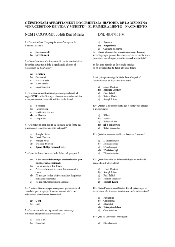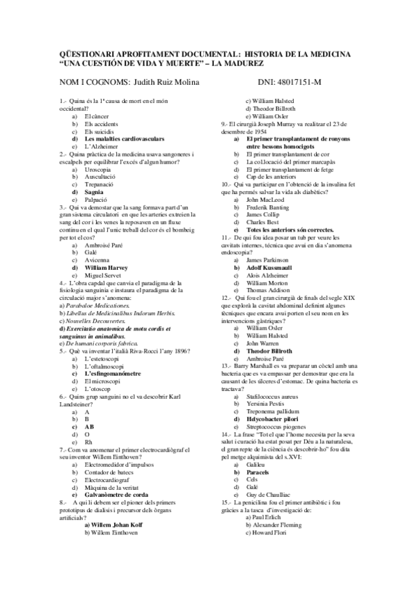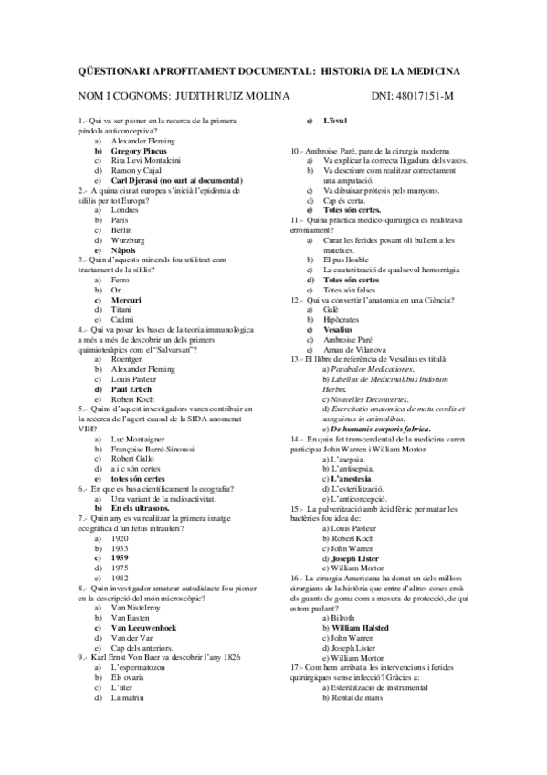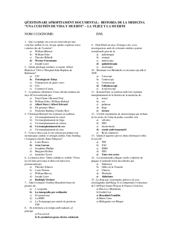 Qüestionaris Història de la Medicina