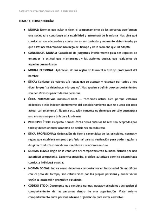 APUNTES FINALES DE BASES ÉTICAS Y METODOLÓGICAS DE LA ENFERMERÍA