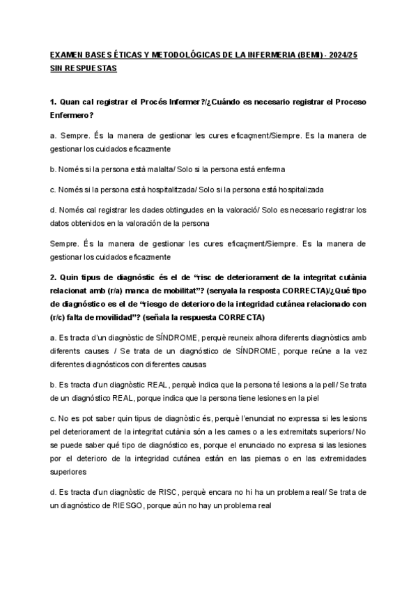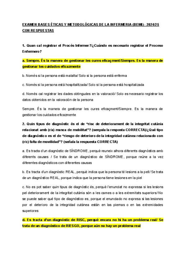 He publicado nuevos examenes de 1º Bases ètiques i metodològiques de la infermeria: BEMI