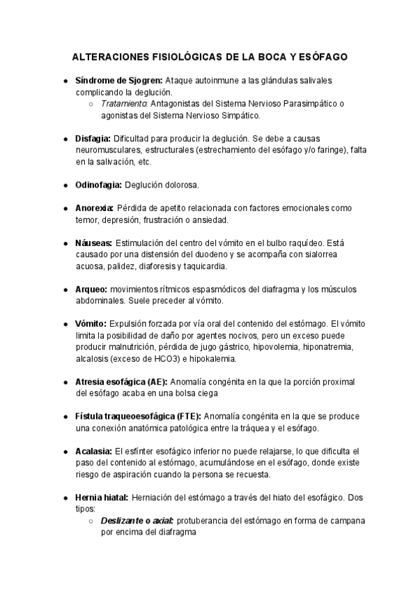 Resúmenes de las patologías de los distintos sistemas y procesos fisiológicos