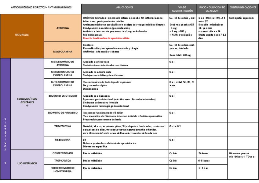 Alguien tiene un resumen tipo tabla con todos los fármacos??? :)