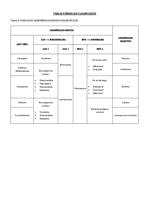 Alguien tiene un resumen tipo tabla con todos los fármacos??? :)
