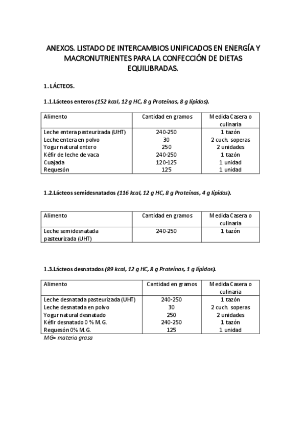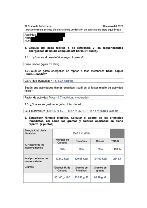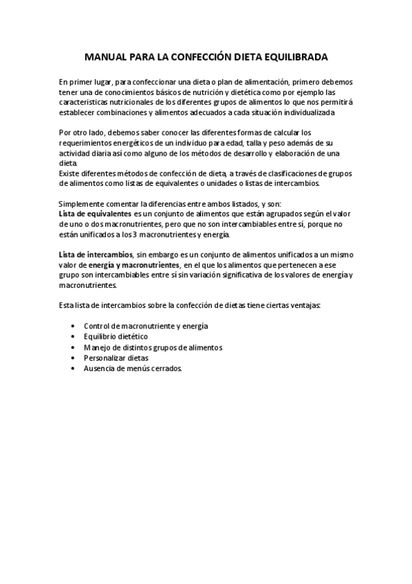 Ejercicio para la Confección de una Dieta Equilibrada.