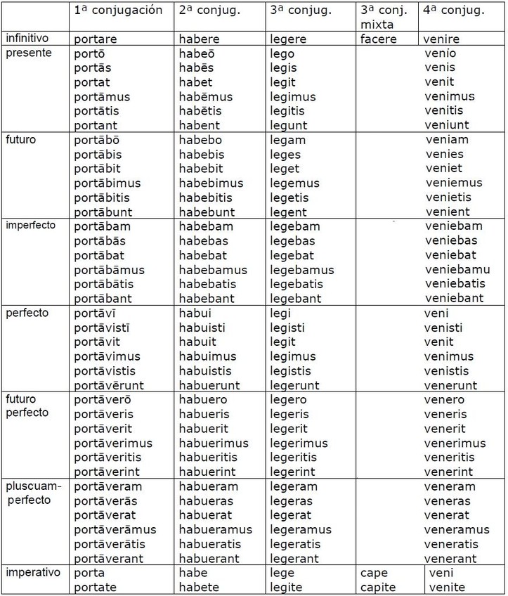 He publicado nuevos apuntes de 1º Bases grecolatinas de la lengua española: cuadro_conjugaciones