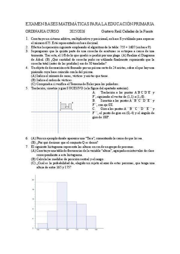He publicado nuevos examenes de 1º Bases Matemáticas Para la Educación Primaria: EXAMEN-BASES-MATEMATICAS-PARA-LA-EDUCACION-PRIMARIA.pdf