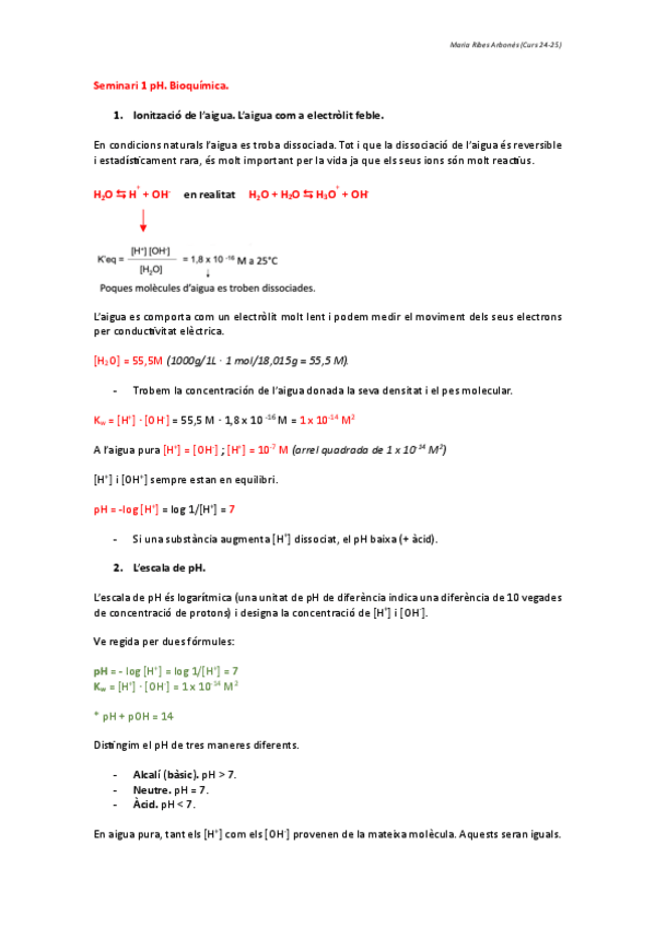 Bioquímica Temes 1-5 + Seminari pH + Mètodes de separació i anàlisi de proteïnes