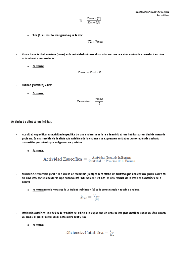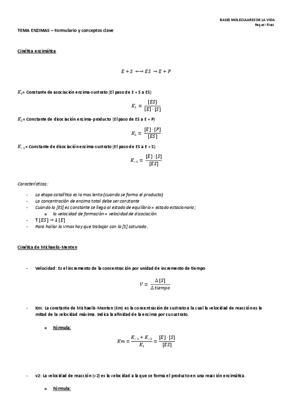 He publicado nuevos apuntes de 1º Bases Moleculares de la Vida: Formulario-Cinetica-enzimas.pdf