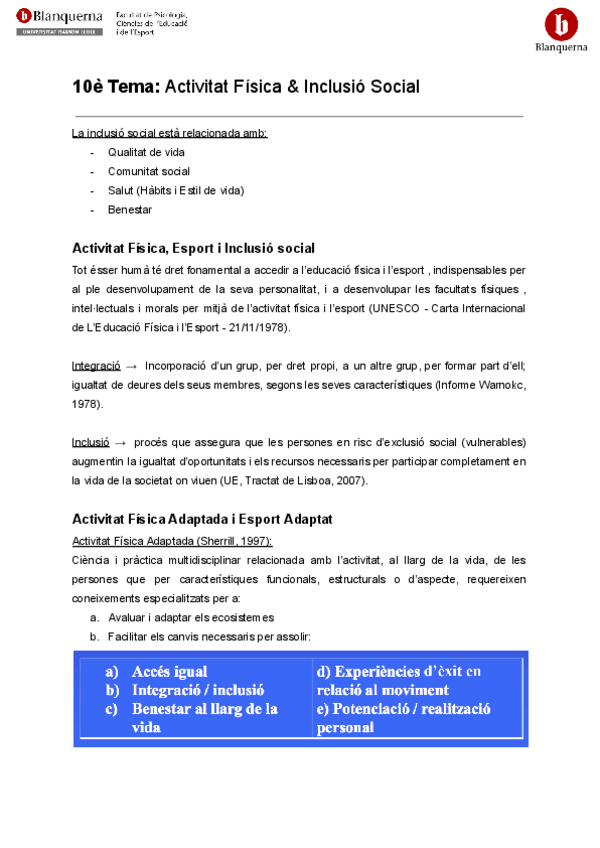 He publicado nuevos apuntes de 1º Bases Sociales de la Actividad Física y del Deporte: Psicología Social de la Actividad Física y del Deporte: 10e-Tema-Activitat-Fisica-and-Inclusio-Social.pdf