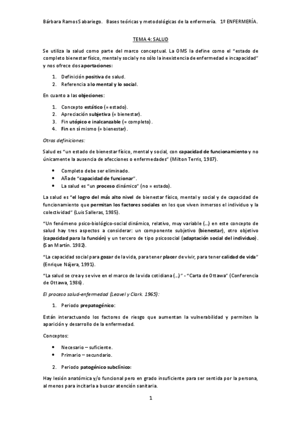 He publicado nuevos apuntes de 1º Bases Teóricas y Metodológicas de la Enfermería: TEMA 4 SALUD.pdf