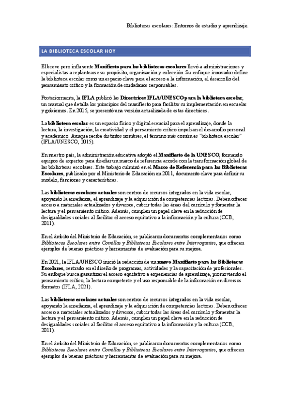 He publicado nuevos apuntes de 4º Bibliotecas Escolares: Entornos de Estudio y Aprendizaje: Resumen-biblioteca.pdf
