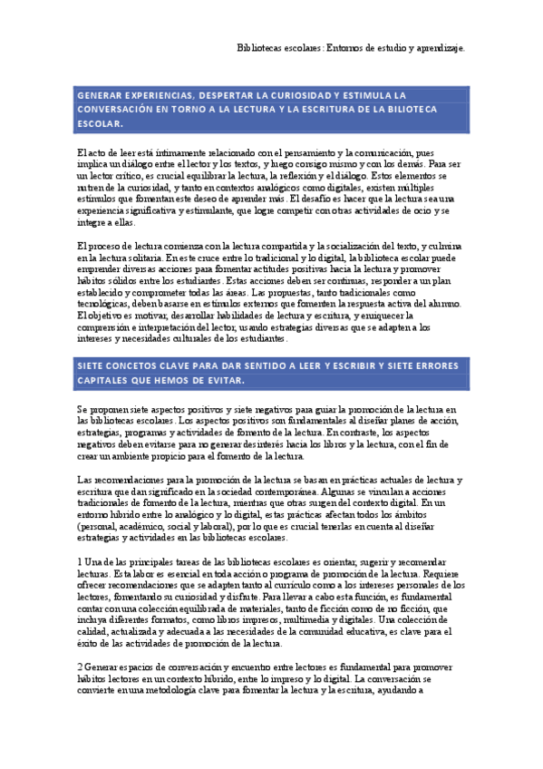He publicado nuevos apuntes de 4º Bibliotecas Escolares: Entornos de Estudio y Aprendizaje: Siete-conceptos-clave-para-dar-sentido-a-leer-y-escribir-y-siete-errores-capitales-que-hemos-de-evitar.pdf