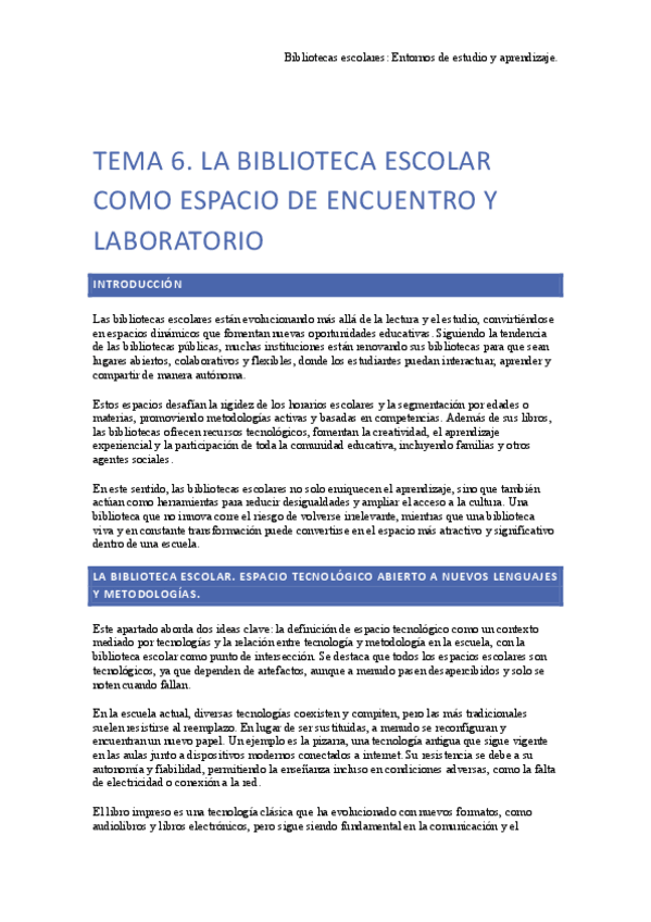 He publicado nuevos apuntes de 4º Bibliotecas Escolares: Entornos de Estudio y Aprendizaje: tema-6.pdf