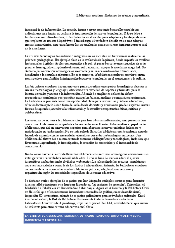 He publicado nuevos apuntes de 4º Bibliotecas Escolares: Entornos de Estudio y Aprendizaje: La-biblioteca-escolar.-Emisora-de-radio-laboratorio-multimedia.pdf