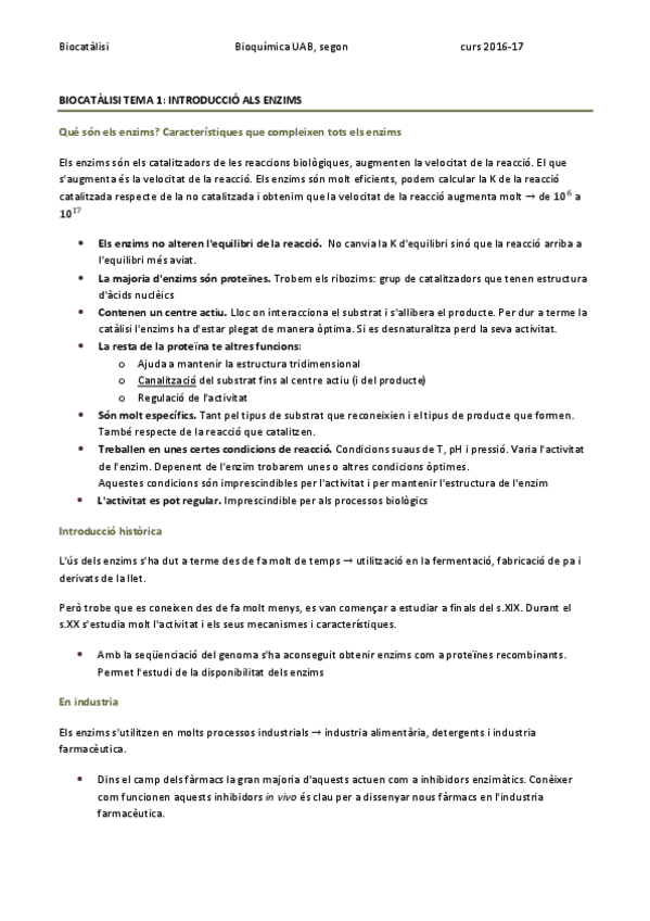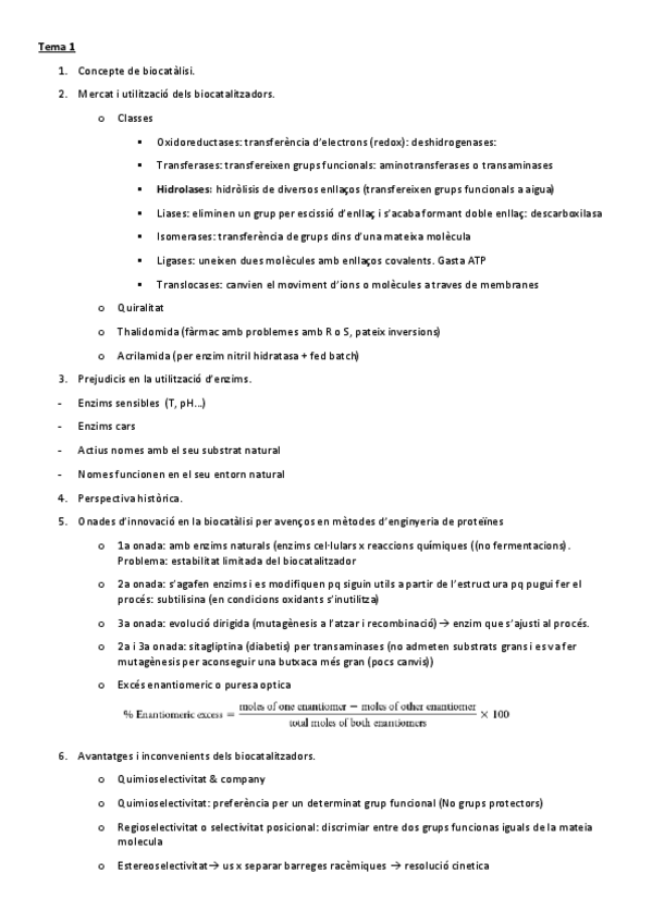 He publicado nuevos apuntes de 2º Biocatálisis: Biocatàlisi