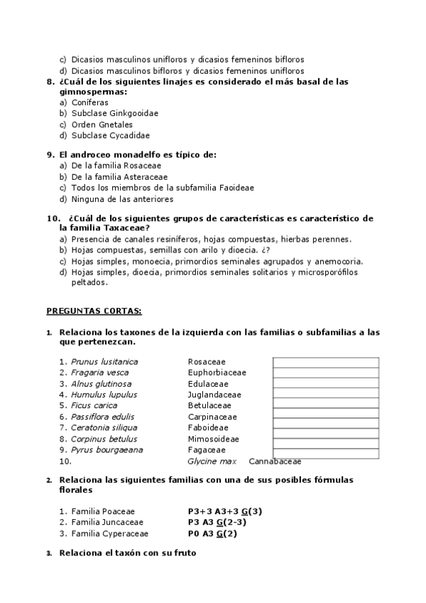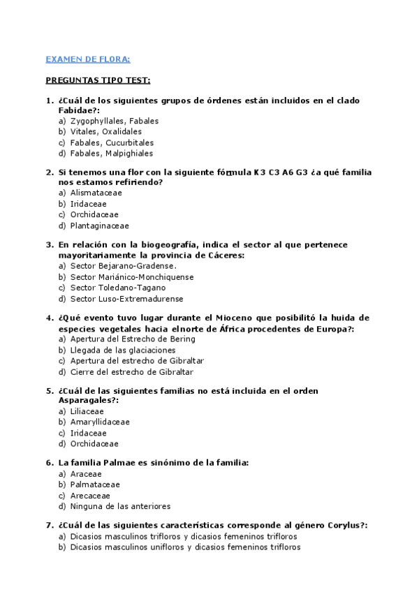 He publicado nuevos examenes de 3º Biodiversidad: Flora Euromediterránea: Examen-Flora.pdf