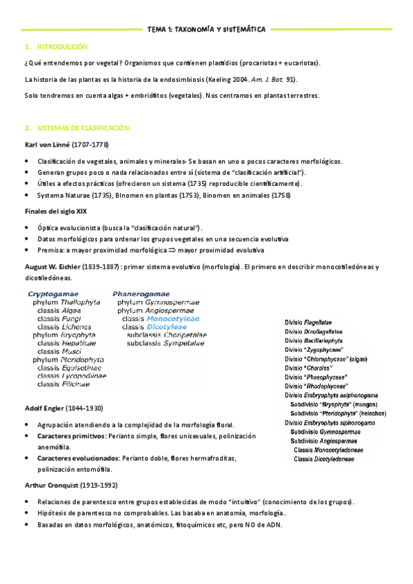 Temas 1-5 del primer parcial, biodiversidad vegetal