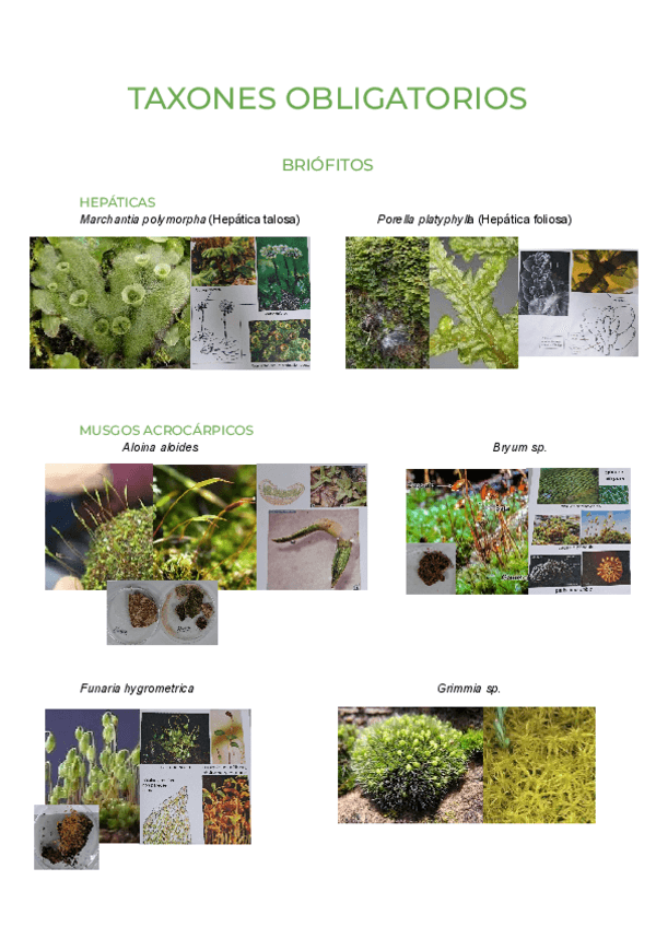 Apuntes laboratorio esquemáticos con nombres y fotos de los especímenes de las prácticas 1 y 2
