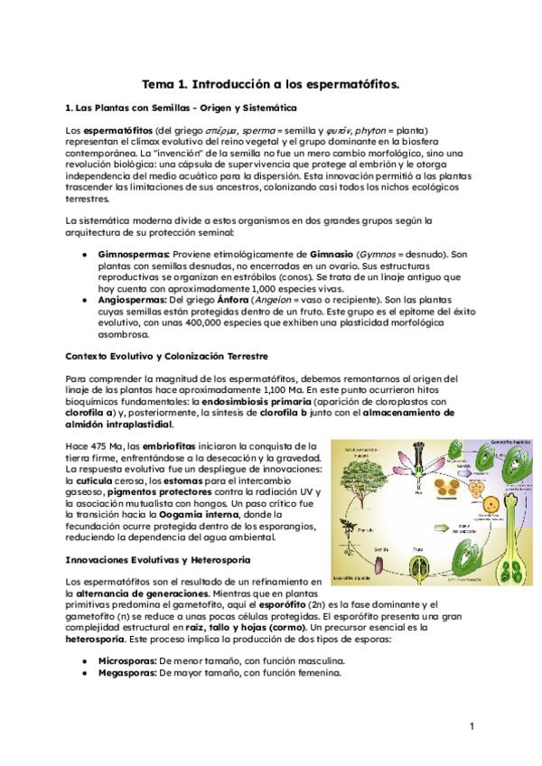 Apuntes completos del Tema 1 de Biodiversidad y Conservación de Espermatófitos