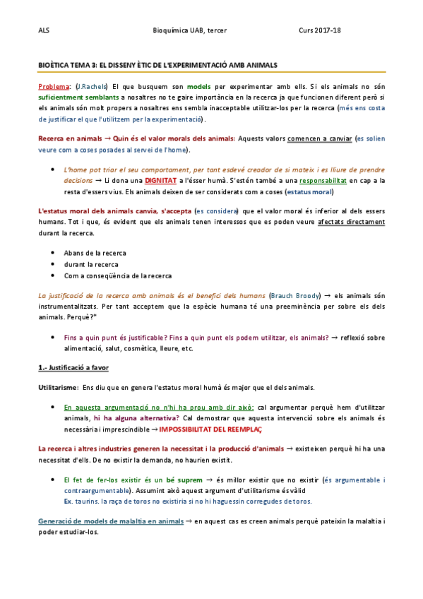 He publicado nuevos apuntes de 3º Bioenergética: BIOÈTICA TEMA 3 - RECERCA AMB ANIMALS.pdf
