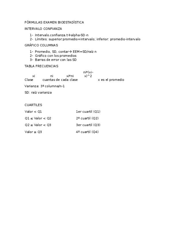 He publicado nuevos apuntes de 1º BIOESTADISTICA E INTRODUCCION A LA INVESTIGACION: FORMULAS-EXAMEN-BIOESTADISTICA.docx